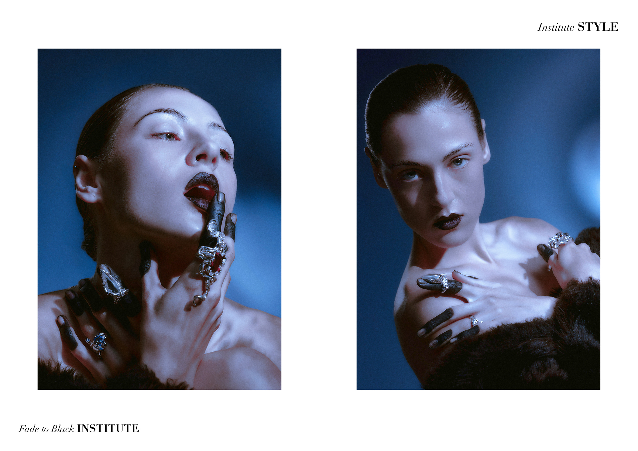 A study in restraint and allure — Fade to Black captures the quiet tension between opulence and shadow. Through the lens of James Morris, every gesture feels cinematic; the body becomes both armour and art. Textures of fur, velvet, and glassy light dissolve into abstraction, revealing beauty in contrast and control.