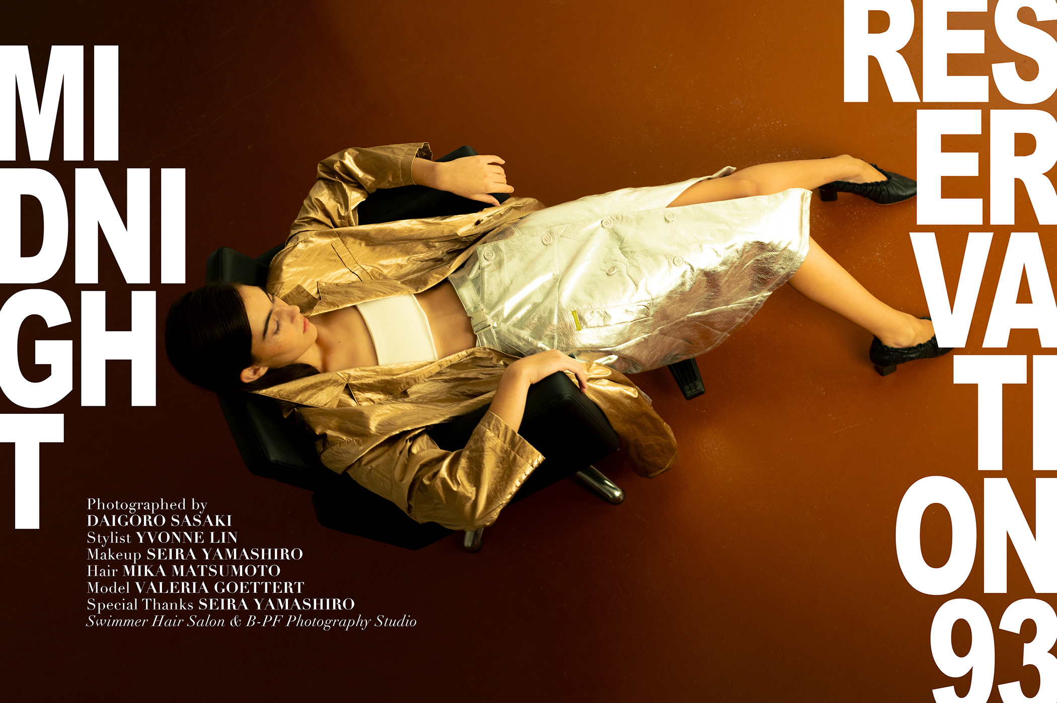 Midnight Reservation 93 unfolds like a quiet after-hours reverie, where restraint meets intention and every frame feels suspended between movement and stillness. Photographed by Daigoro Sasaki, the narrative is cinematic yet controlled, drenched in warm amber tones and punctuated by moments of stark monochrome. The lens lingers, allowing the atmosphere to settle into something both intimate and architectural.